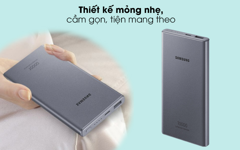 Hình dạng và kích thước gần như 1 chiếc smartphone thời thượng của Samsung, sạc dự phòng dễ dàng cầm nắm, dịch chuyển, không choáng chỗ trong túi xách, balo của bạn khi mang theo bên mình trong hành trang thường nhật.